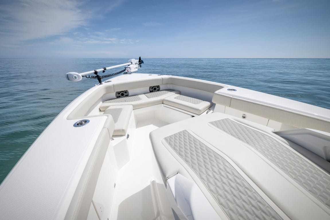 There are cup holders placed throughout the bow and recessed grab rails for an extra layer of security and safety while on the water.