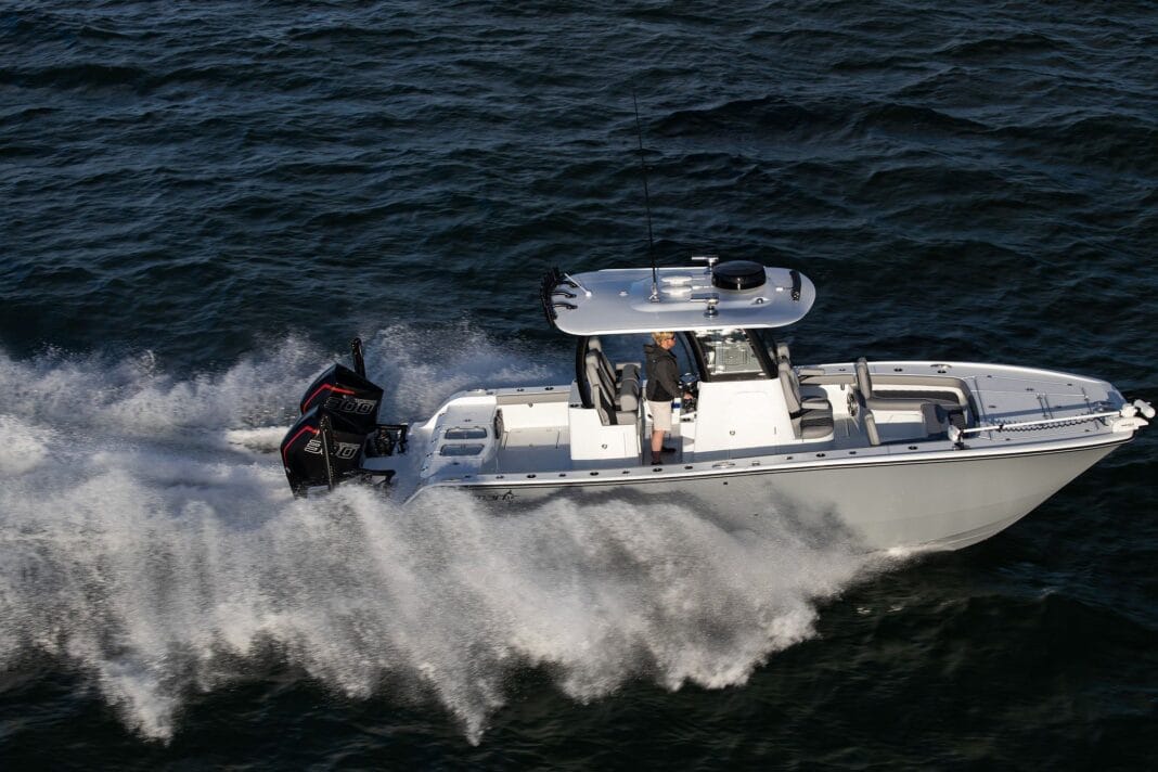 The 2023 Freeman 28 comes standard with twin Mercury 300 HP Mercury Verado engines. The Verado line of engines is well-known for their performance, design, and power. They are best suited for fishing boats, so it makes sense that they would come standard on the Freeman 28.