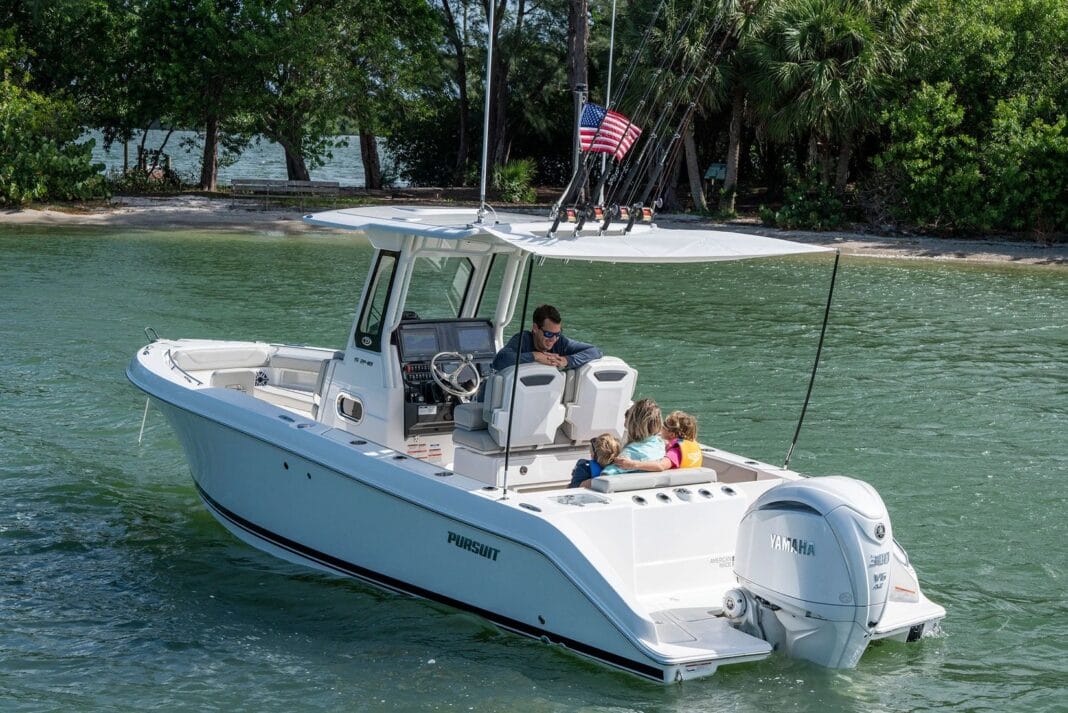 From storage to comfortable and flexible seating, you will find that this boat offers you a lot. The construction of this boat is impeccable and comes with Pursuit’s protection plan, which provides a warranty on the hull, which can’t be beaten.