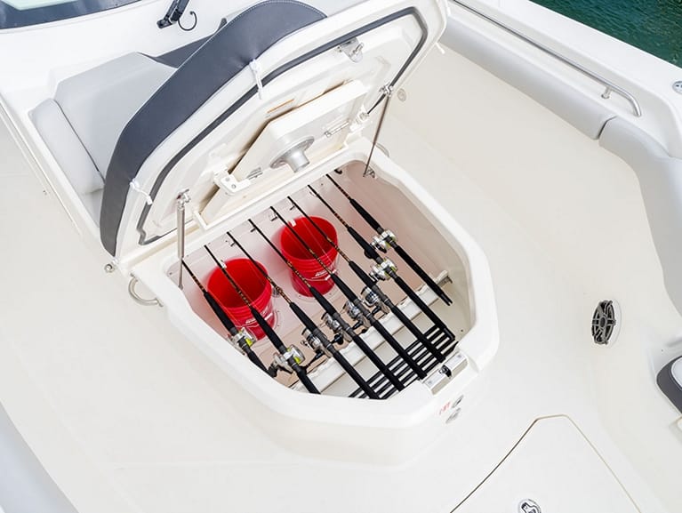 While there are plenty of large fishing features, Boston Whaler never lets us down and has included some smaller features as well, such as under-seat storage compartments, dedicated trash cans, and glove boxes. You will find that everything has its place on the boat, and everything is always accessible when you need it.Â